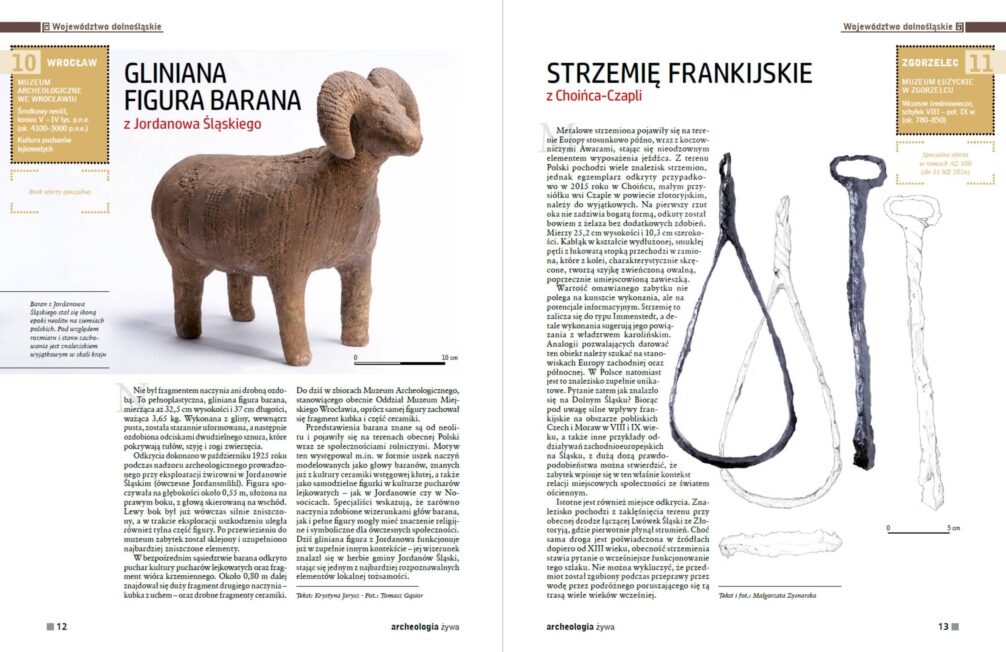 W jubileuszowym numerze prezentujemy 100 zabytków z 100 polskich muzeów. Całość uporządkowaliśmy województwami oraz alfabetycznie według miejscowości, tak aby numer był jednocześnie lekturą i praktycznym przewodnikiem po archeologicznych zbiorach w całej Polsce.