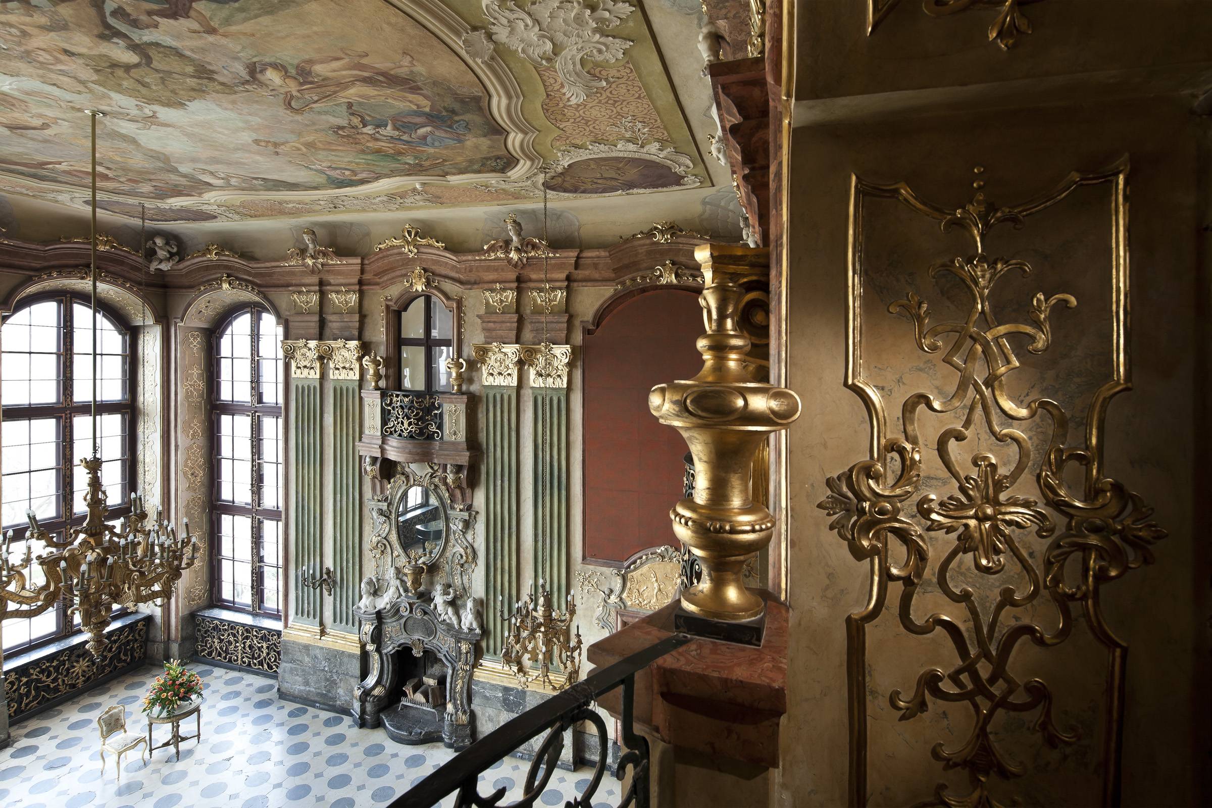 Przebudowa barokowa odbyła się w dwóch fazach – zainicjowana przez Jana Henryka II, została z wielkim rozmachem ukończona przez jego syna Konrada Ernesta Maksymiliana. I tak naprawdę to o nim najwięcej dowiadujemy się analizując zmiany, które zaszły. To ogromne przedsięwzięcie całkowicie odmieniło oblicze dawnej górskiej twierdzy, którą Maksymilian przeobraził w nowoczesną, komfortową rezydencję. A przede wszystkim imponującą – miała bowiem robić wrażenie na gościach hrabiego. Do realizacji zadania zatrudnił najlepszy zespół artystów działających na ówczesnym Śląsku – mistrza budowlanego Felixa Antona Hammershmidta do wykonania projektu przebudowy, prace kamieniarskie wykonał świdniczanin Johann Schibs, marmoryzacjami zajął się Włoch Ignazio Provisore i sztukator Paolo Ramelli, rzeźby wyszły spod dłuta Johanna Georga Schnecka z Ziębic oraz Gottfrieda Hoffmanna z Drezna. Autorem programu malarskiego został Bawarczyk Felix Anton Scheffler, który skomponował go – jak sam stwierdził w pozostawionej na plafonie inskrypcji – przebywając w Pradze. Pełne alegorii i odniesień do mitologii przedstawienia malarskie stanowiły część komunikatu oświeconego hrabiego Maksymiliana, który chciał przekazać zacnym gościom przybywającym do Książa.